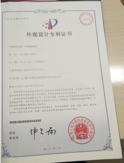 兩項(xiàng)外觀專(zhuān)利證書(shū)